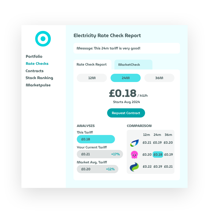 No more stressing at the time of renewal. Our smart platform will analyse your portfolio and send you digital Rate Check Reports previewing tariffs aligned to your strategy. Once you are ready, click a button and procure your new contract with the support of your Account Manager aling the way.